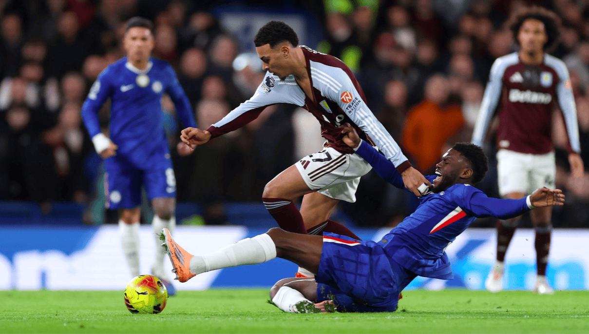 第37分钟,里斯·詹姆斯开出角球,维拉门前一片混乱,皮球砸在佩德罗的小腿上,弹进球门。